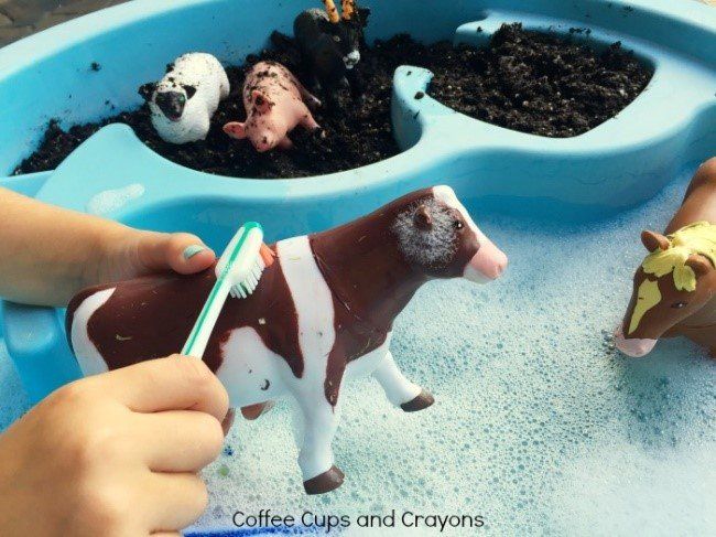 Create a farm/zoo with your children’s toy animals, add an area of soil if you have any at home. Set up a wash station, pretend that the animals are due a bath time, get your children to wash and dry the animals. Discuss where each animal lives and why they may carry dirt.